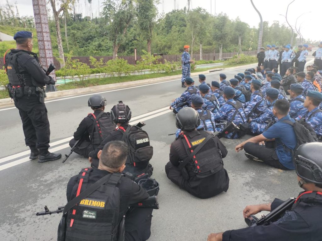 Komandan Batalyon A Pelopor Satbrimob Polda Kaltim, Kompol Iwan Pamuji, S.H., M.H., menjelaskan bahwa jajarannya telah bersiaga penuh dan menjalankan pengamanan dengan koordinasi lintas instansi. “Kami telah menyiapkan pengamanan secara menyeluruh dan profesional. Setiap personel dibekali instruksi teknis sesuai SOP, dan kami terus berkoordinasi dengan TNI serta unsur pengamanan lainnya,” ujarnya.