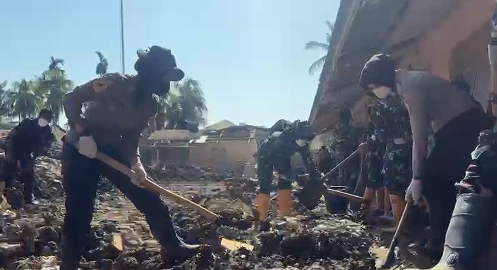 Taruna Akpol, Sultan Rekha Alfarabbi Firdaus, menjelaskan bahwa kondisi lumpur di dalam ruangan sekolah masih cukup tebal sehingga membutuhkan penanganan serius.