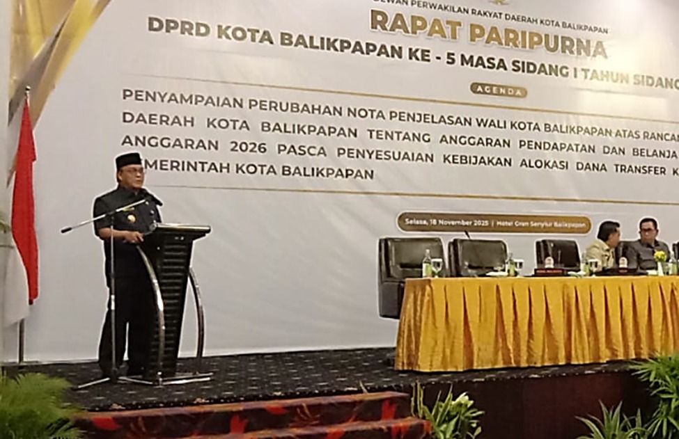 Faktanusa.com, Balikpapan — DPRD Kota Balikpapan menggelar Rapat Paripurna Masa Sidang I Tahun 2025/2026 dengan agenda penyampaian Nota Penjelasan (Nopen) Wali Kota atas Rancangan Peraturan Daerah (Raperda) Anggaran Pendapatan dan Belanja Daerah (APBD) Tahun 2026, pasca penyesuaian kebijakan alokasi dana transfer ke daerah dari pemerintah pusat. Rapat ini digelar di Hotel Grand Senyiur Balikpapan, Selasa (18/11/2025).