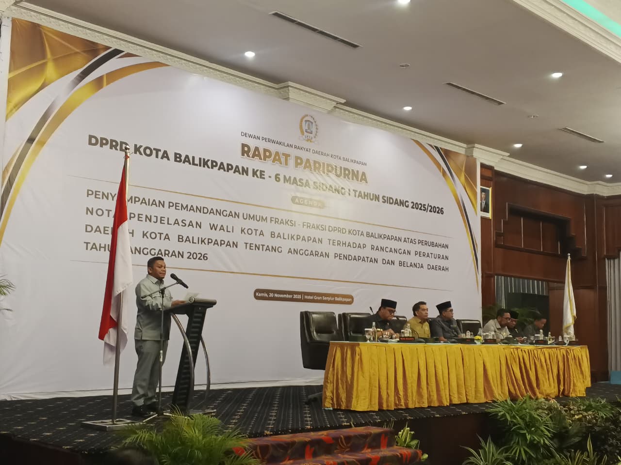 “Catatan dan dorongan ini kami sampaikan untuk memastikan efektivitas APBD serta menjaga kualitas pembangunan Kota Balikpapan di tengah kondisi fiskal yang menuntut kehati-hatian,” ujarnya menutup penyampaian pandangan umum.