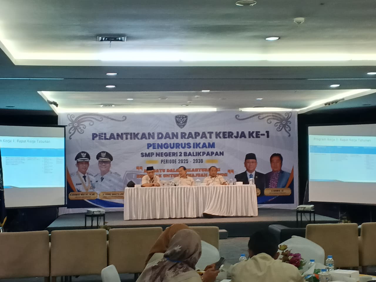 Sekretaris IKAM SMPN 2 Balikpapan Anton Anggana, S.T, menyampaikan rasa syukur atas kelancaran pelantikan dan terselenggaranya rapat kerja tersebut.