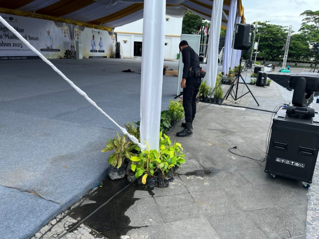 Faktanusa.com, Balikpapan – Guna menjamin keselamatan dan kenyamanan ribuan jamaah yang hadir, Satu Unit personel Detasemen Gegana Satuan Brimob Polda Kaltim melaksanakan operasi sterilisasi di lokasi pelaksanaan acara keagamaan besar, Tabligh Akbar Balikpapan Madinatul Iman, yang dipusatkan di Halaman Balikpapan Sport and Convention Center (BSCC) Dome, Minggu (23/11/2025). Aksi preventif ini merupakan prosedur standar keamanan yang wajib dilakukan sebelum event berskala besar yang mengundang massa dalam jumlah signifikan.