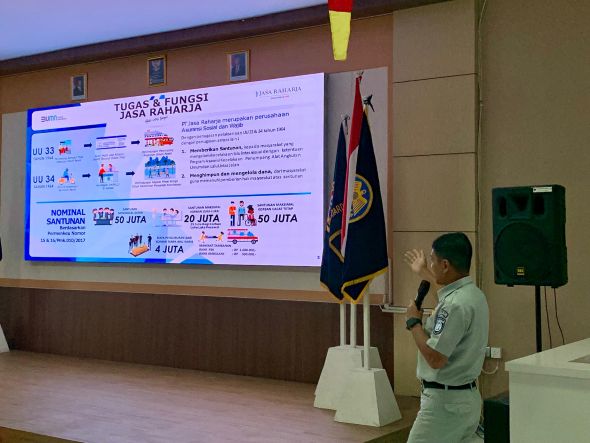 BONTANG – PT Jasa Raharja Wilayah Bontang kembali menjadi narasumber kegiatan sosialisasi keselamatan sekaligus memberikan materi Peran dan Fungsi Jasa Raharja di Kantor Kesyahbandaran dan Otoritas Pelabuhan (KSOP) Kelas II Bontang, Kamis (11/9/2025).