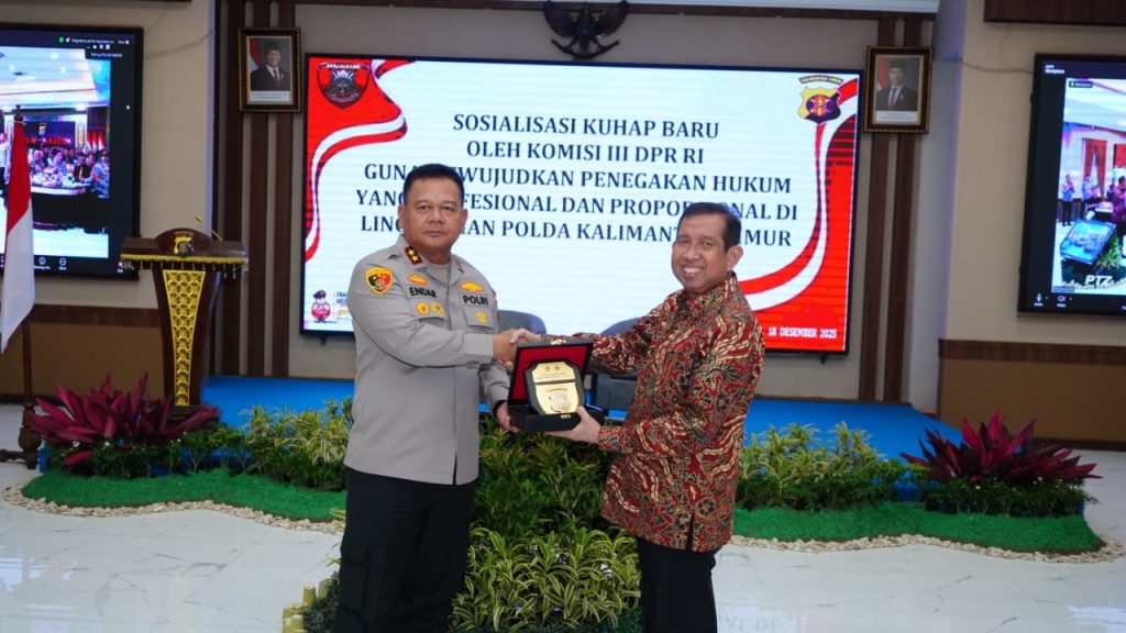 Faktanusa.com, Balikpapan – Komisi III DPR RI melaksanakan kegiatan Sosialisasi Rancangan Kitab Undang-Undang Hukum Acara Pidana (RKUHAP) guna mewujudkan penegakan hukum yang profesional dan proporsional di lingkungan Polda Kalimantan Timur. Kegiatan tersebut berlangsung di Gedung Mahakam Polda Kaltim. Kamis (18/12/25).