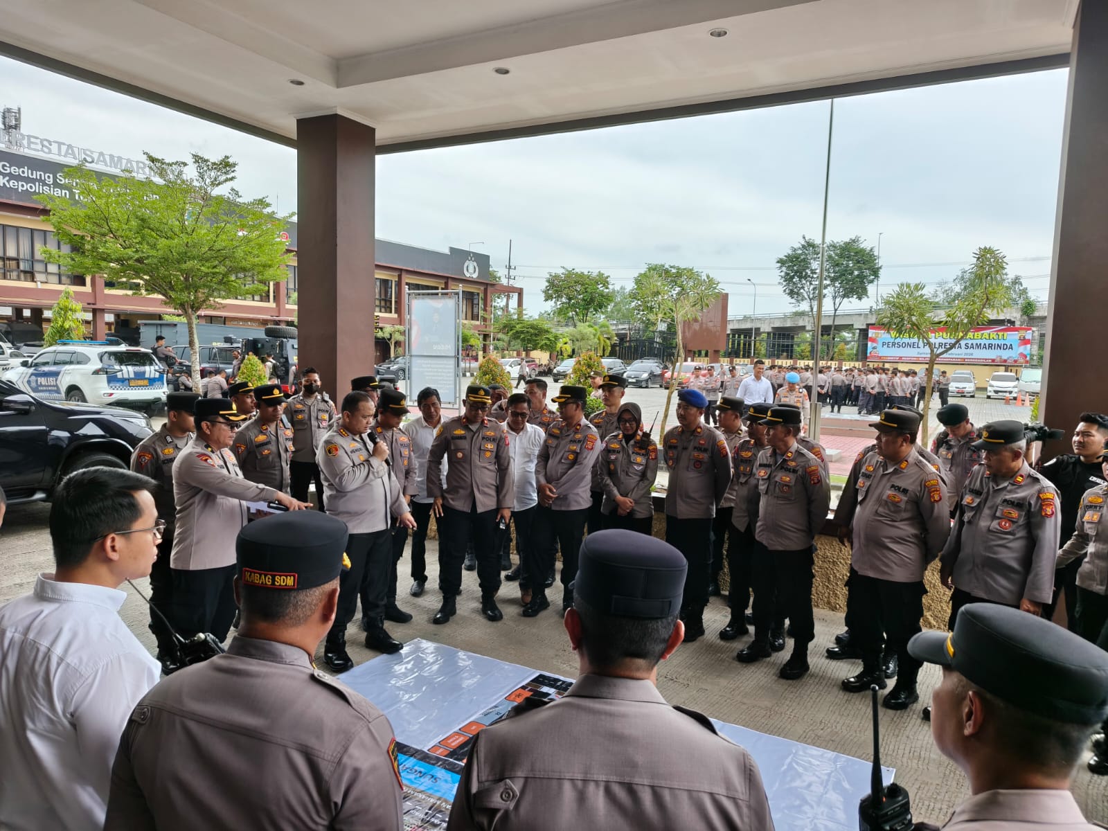 Sebagai langkah pemantapan strategi pengamanan di lapangan, sebelum personel menempati pos masing-masing, telah dilaksanakan Tactical Floor Game (TFG) yang dipimpin langsung oleh Kapolresta Samarinda, Kombes Pol. Hendri Umar. Dalam simulasi tersebut, ditekankan pentingnya koordinasi antar-satuan dan penempatan personel pada titik-titik krusial guna mencegah terjadinya gesekan yang tidak diinginkan antara petugas dan massa aksi. Kompol Edy Musdwiyono memastikan seluruh jajarannya memahami prosedur standar operasional (SOP) dengan mengedepankan pendekatan humanis namun tetap tegas dalam menjaga ketertiban umum di jantung Kota Samarinda.