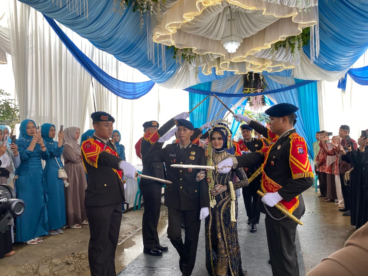 Faktanusa.com, Samarinda – Tradisi unik dan sakral Korps Brimob, Khadgapadma Pora atau dikenal dengan sebutan Teratai Pora, mewarnai resepsi pernikahan salah satu personel Batalyon B Pelopor, Bripda Dimas Kurnia Suryanata. Acara ini digelar dengan khidmat di Kelurahan Rawa Makmur, Kecamatan Palaran, Kota Samarinda, pada hari Minggu (30/11/2025). Tradisi ini melambangkan penghormatan dan pengantar bagi Bripda Dimas memasuki lembaran hidup baru sebagai Bhayangkara Sejati yang berumah tangga.