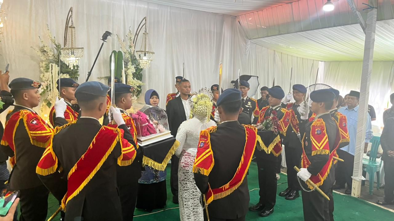 Upacara yang berlangsung sakral ini dipimpin langsung oleh AKP Sriwiyono, S.H., M.H. dengan melibatkan barisan personel pilihan. Di bawah hunusan pedang khas Brimob yang disebut Khadga, kedua mempelai melangkah perlahan melintasi barisan sebagai simbol kesiapan dalam menempuh hidup baru yang penuh rintangan namun didasari oleh kekuatan cinta dan loyalitas. Kehadiran tradisi ini tidak hanya menambah kemegahan acara, tetapi juga mempererat jalinan kekeluargaan di lingkungan internal Satuan Brimob Polda Kaltim, khususnya bagi keluarga besar Batalyon B Pelopor.