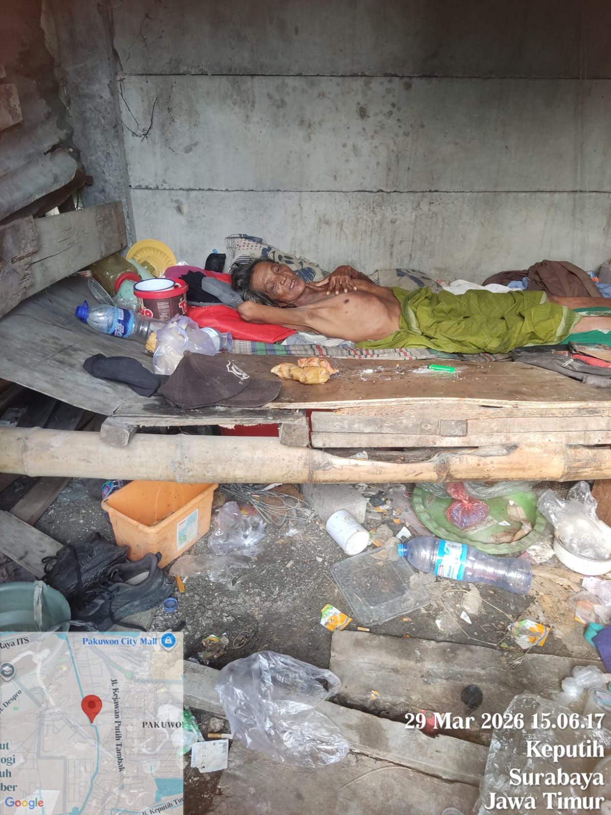 Faktanusa.com, Surabaya, 29 Maret 2026 — Kondisi memprihatinkan dialami seorang kakek lanjut usia bernama Sueb yang telah tinggal selama kurang lebih 10 tahun di Surabaya. Kakek tersebut dilaporkan tengah sakit dan mengalami kelaparan selama tiga hari terakhir tanpa adanya pendampingan dari keluarga maupun kerabat.