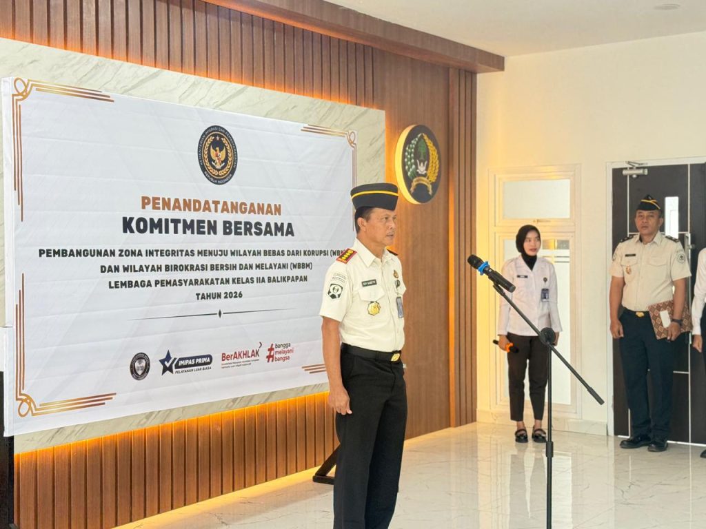 Faktanusa.com, Balikpapan – Lembaga Pemasyarakatan (Lapas) Kelas IIA Balikpapan menggelar Apel dan Penandatanganan Komitmen Bersama Pembangunan Zona Integritas (ZI) menuju predikat Wilayah Bebas dari Korupsi (WBK) dan Wilayah Birokrasi Bersih dan Melayani (WBBM) Tahun 2026. Kegiatan tersebut dilaksanakan pada Rabu (4/2/2026) di Kantor Lapas Kelas IIA Balikpapan.
