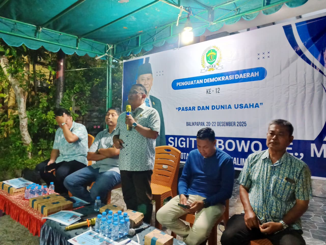 Faktanusa.com, Balikpapan – Anggota Komisi II DPRD Kalimantan Timur, Sigit Wibowo, kembali menyapa masyarakat melalui kegiatan Penguatan Demokrasi Daerah (PDD) ke-12. Kegiatan kali ini digelar di Jalan DI Panjaitan, RT 03, Kelurahan Gunung Samarinda, Kecamatan Balikpapan Utara, Sabtu (20/12/2025) malam, dengan mengangkat tema Pasar dan Dunia Usaha.