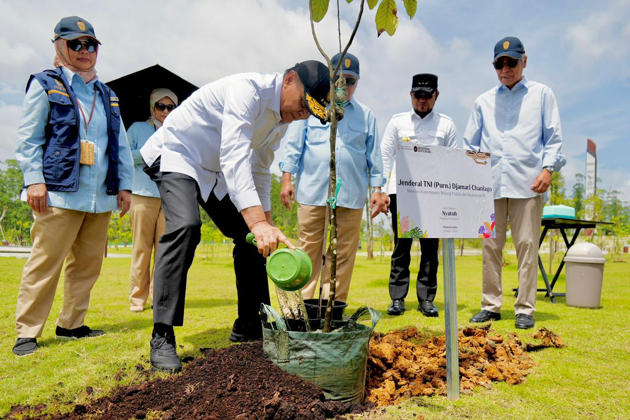 Pada kegiatan ini Menko Polkam juga melaksanakan penanaman pohon Nyatoh (Palaquium Rostratum) yang diharapkan tumbuh dan menambah asri lingkungan hidup di IKN. Turut mendampingi Menko Polkam yaitu Gubernur Kalimatan Timur Rudy Mas’ud, Sesmenko Polkam Letjen TNI Mochammad Hasan, Pangdam VI/Mulawarman Mayjen TNI Krido Pramono, Deputi Bidkor Poldagri Kemenko Polkam Mayjen TNI (purn.) Heri Wiranto, Wakapolda Kalimantan Timur Brigjen Pol. Adrianto Jossy Kusumo, Danlanud Dhomber Balikpapan Kolonel Pnb. Kisworo, dan beserta jajaran terkait.