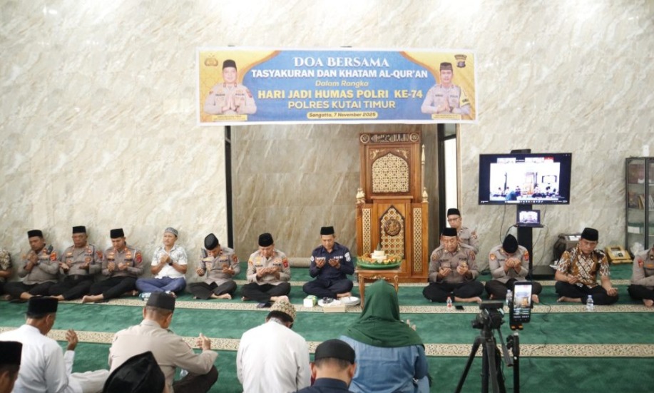 Faktanusa.com, Kutim – Dalam rangka memperingati Hari Ulang Tahun (HUT) ke-74 Humas Polri, Seksi Humas Polres Kutai Timur melaksanakan kegiatan religius berupa doa bersama, tasyakuran, dan Khataman Al-Qur’an sebanyak 74 kali di lingkungan Polres Kutim, Jumat (07/11/25). Kegiatan ini diikuti oleh seluruh personel Humas, perwakilan satuan fungsi, serta tokoh agama setempat.