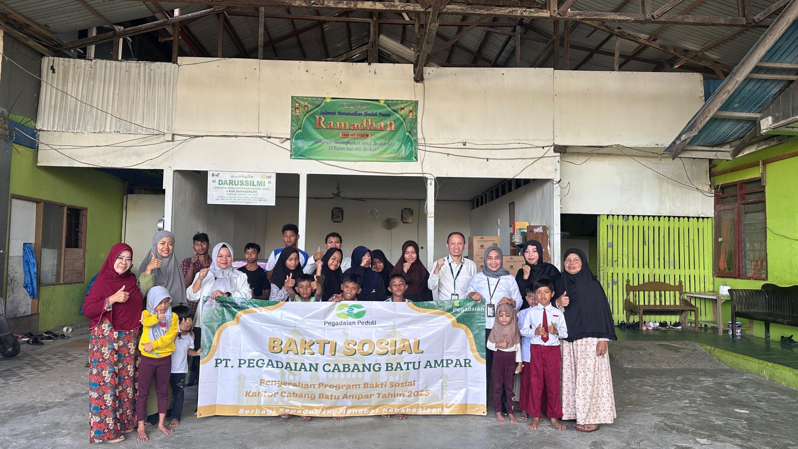 Kegiatan pertama dilaksanakan pada 15 September 2025 di Lembaga Kesejahteraan Sosial Anak (LKSA) Darussilmi Kariangau. Pegadaian menyalurkan bantuan sarana berupa 10 kasur busa dan 10 lemari plastik yang diterima langsung oleh penanggung jawab LKSA, Maria Ulfah.