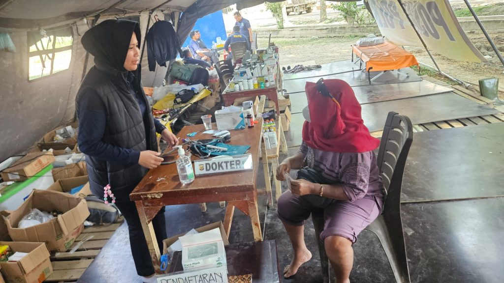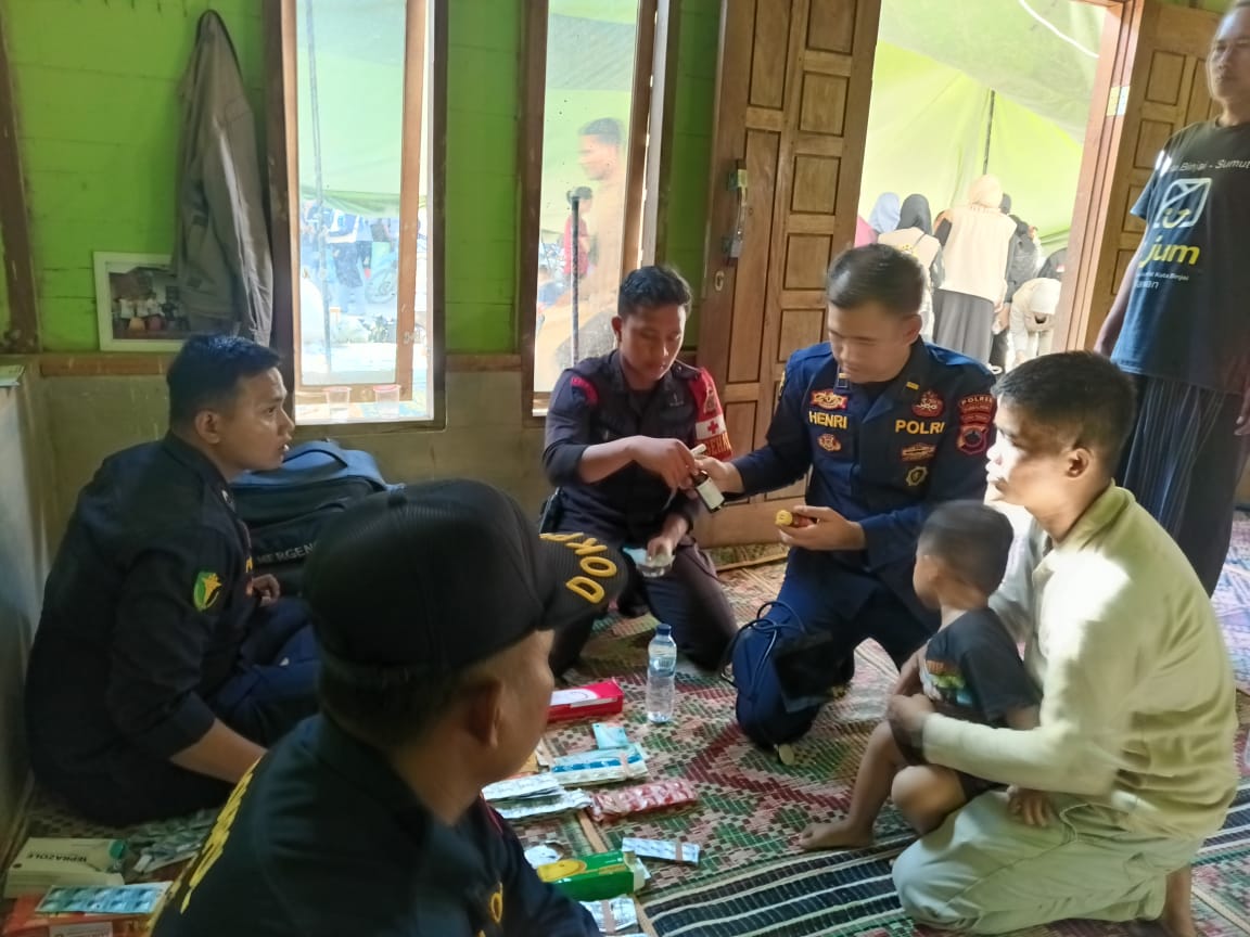 “Sejak banjir kemarin, banyak warga yang batuk dan sesak napas. Kami sulit ke puskesmas karena akses jalan rusak. Alhamdulillah, polisi datang langsung memeriksa kami dan memberi obat. Ini sangat membantu dan menenangkan warga,” tuturnya haru.