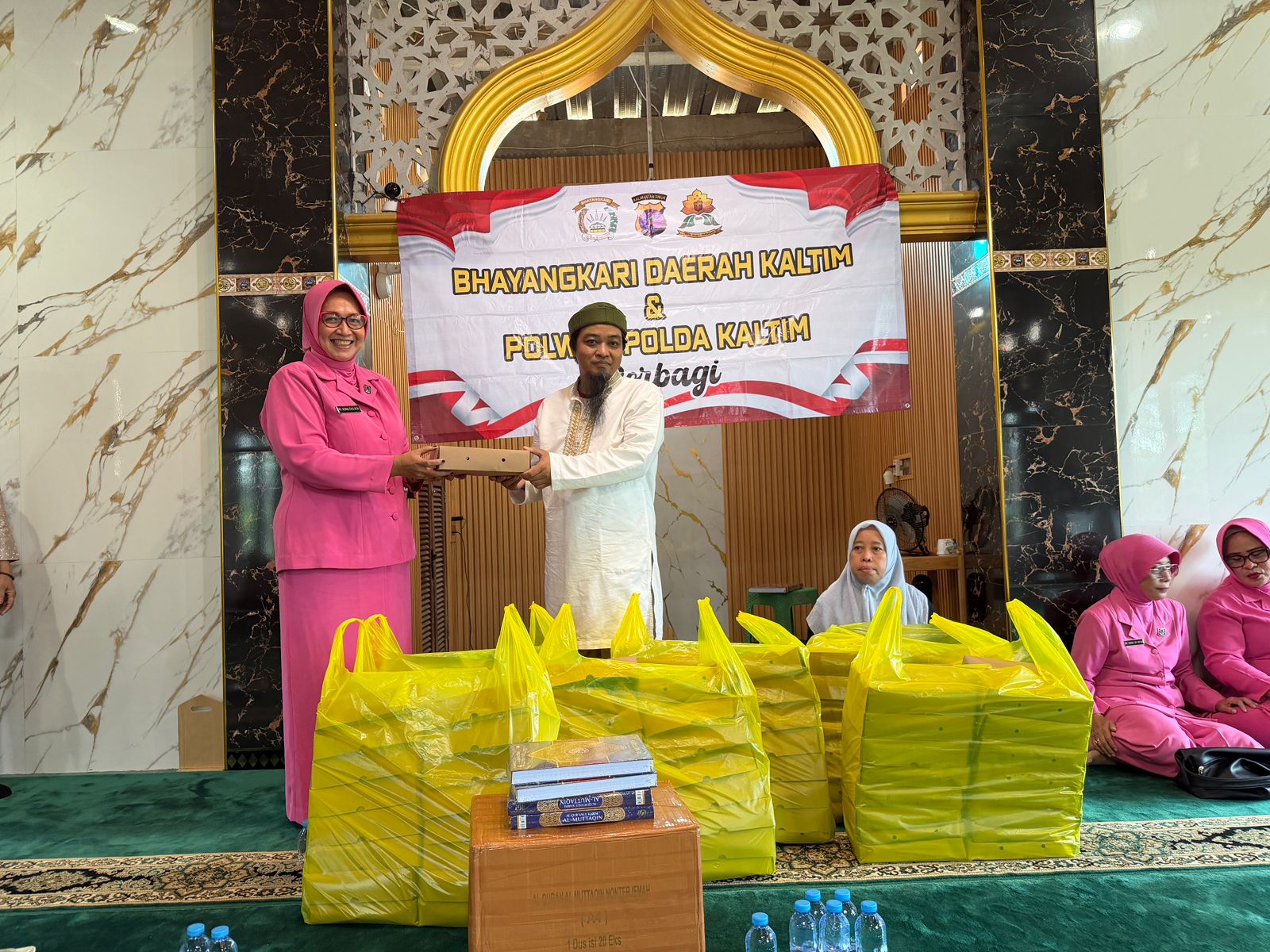 Dalam kegiatan tersebut, sebanyak 100 box makanan dan 25 mushaf Al-Qur’an diserahkan kepada warga RT 20 Karang Joang. Kehadiran para Polwan dan Bhayangkari disambut hangat oleh masyarakat setempat yang antusias mengikuti kegiatan hingga selesai.