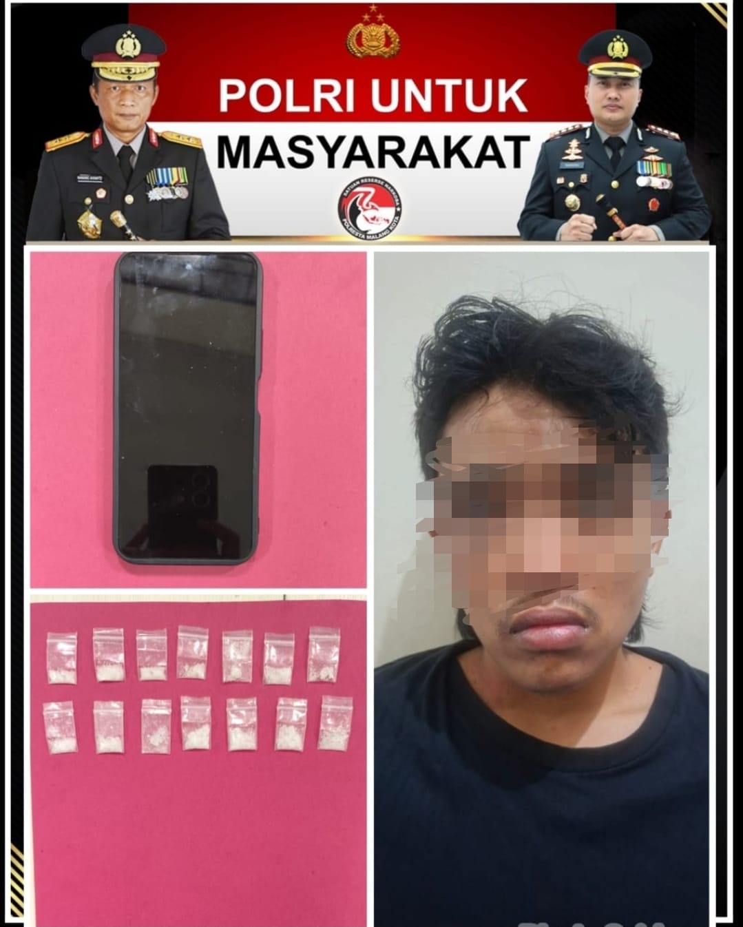 Faktanusa.com, Malang -Satreskoba Polresta Malang Kota menangkap seorang terduga kurir narkoba di Jalan Cengger Ayam, Lowokwaru, pada Sabtu (22/11) sekitar pukul 19.30 WIB