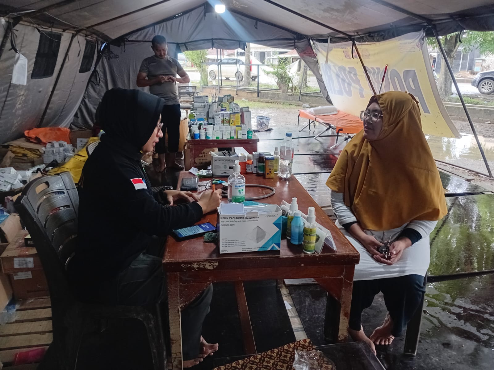 Layanan yang diberikan meliputi pemeriksaan kesehatan umum, pengobatan dan pemberian obat-obatan, penanganan luka ringan, pelayanan kesehatan ibu dan anak, serta edukasi kesehatan guna mencegah potensi munculnya penyakit pascabencana.