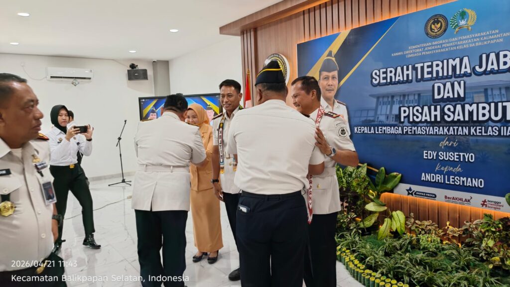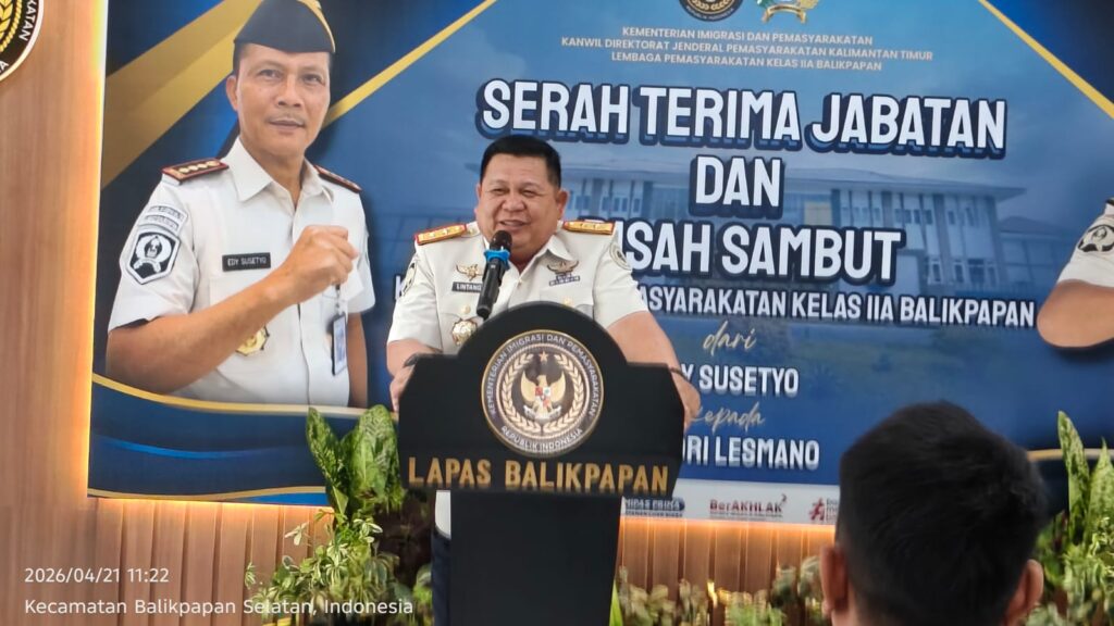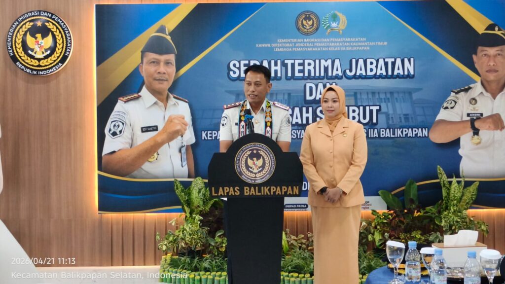 Faktanusa.com, Balikpapan — Lembaga Pemasyarakatan (Lapas) Kelas IIA Balikpapan menggelar serah terima jabatan (sertijab) Kepala Lapas yang dirangkaikan dengan pisah sambut serta ikrar Zero Halinar (handphone, pungli, dan narkoba), Selasa (21/4/2026) pagi. Kegiatan yang berlangsung di Aula Gedung Baru Lapas Balikpapan ini menjadi momentum penting dalam memperkuat komitmen integritas di lingkungan pemasyarakatan.