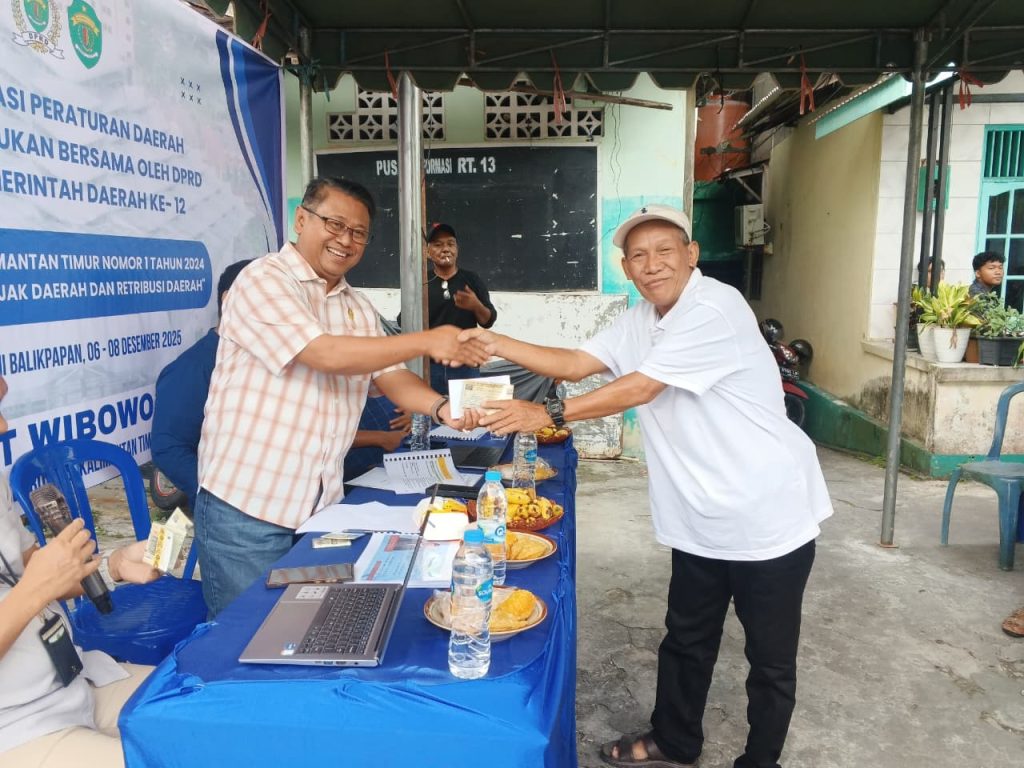 Faktanusa.com, Balikpapan – Anggota DPRD Provinsi Kalimantan Timur (Kaltim) dari Fraksi PAN, Sigit Wibowo, kembali turun langsung ke masyarakat melalui kegiatan Sosialisasi Peraturan Daerah (Sosper) Nomor 1 Tahun 2024 tentang Pajak Daerah dan Retribusi Daerah. Acara ini digelar di Jalan Prapatan RT 13, Kelurahan Telaga Sari, Balikpapan Kota, pada Sabtu (6/12/2025), dan dihadiri puluhan warga serta tokoh masyarakat setempat.