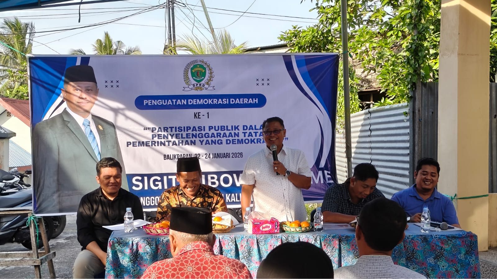 Kegiatan terbaru Penguatan Demokrasi Daerah berlangsung di Jl. Mulawarman RT 13, Kelurahan Sepinggan, Kecamatan Balikpapan Selatan, Kota Balikpapan, Provinsi Kalimantan Timur, Sabtu (24/1/2026). Agenda ini merupakan pelaksanaan ke-1 dan dipimpin langsung oleh Anggota DPRD Provinsi Kalimantan Timur, Sigit Wibowo, S.E., M.E., dengan mengangkat tema “Partisipasi Publik dalam Penyelenggaraan Tata Pemerintahan yang Demokratis.”