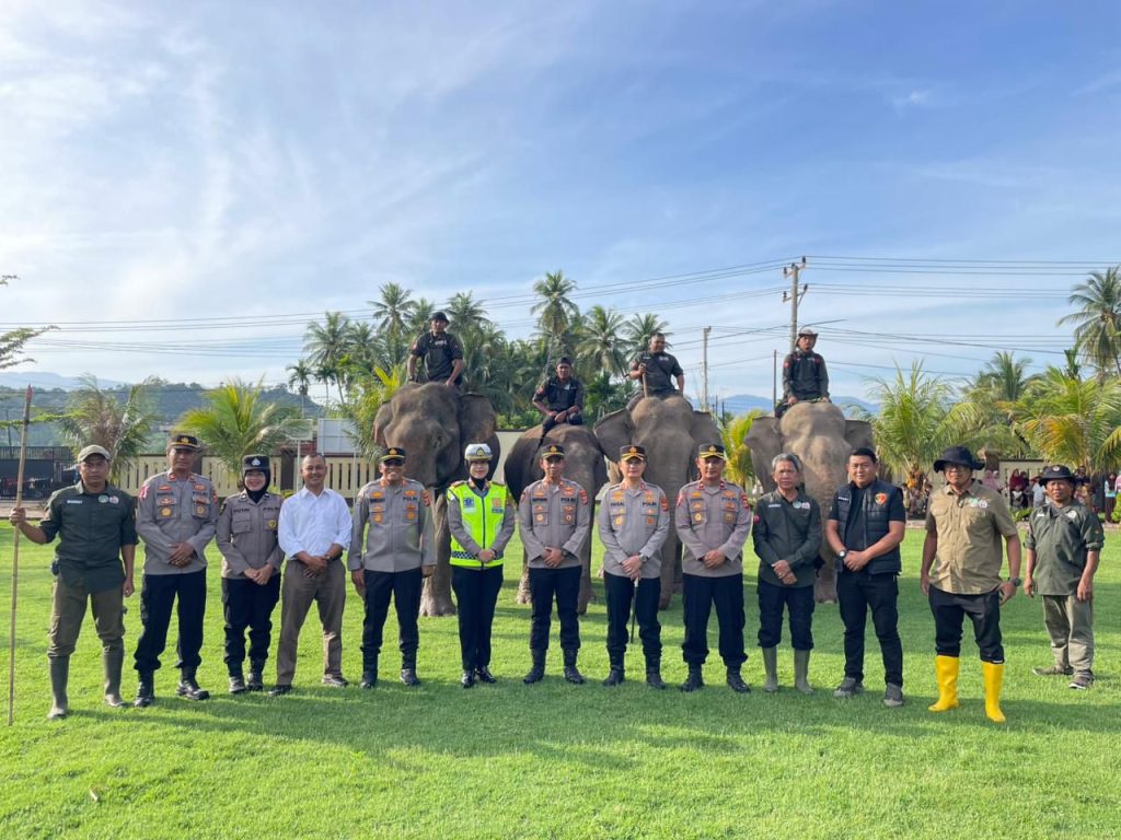 Kasat Reskrim Polres Pidie Jaya, Iptu Fauzi Admaja, mewakili Kapolres Pidie Jaya, menyampaikan bahwa seluruh gajah telah tiba dan langsung bekerja membantu masyarakat.