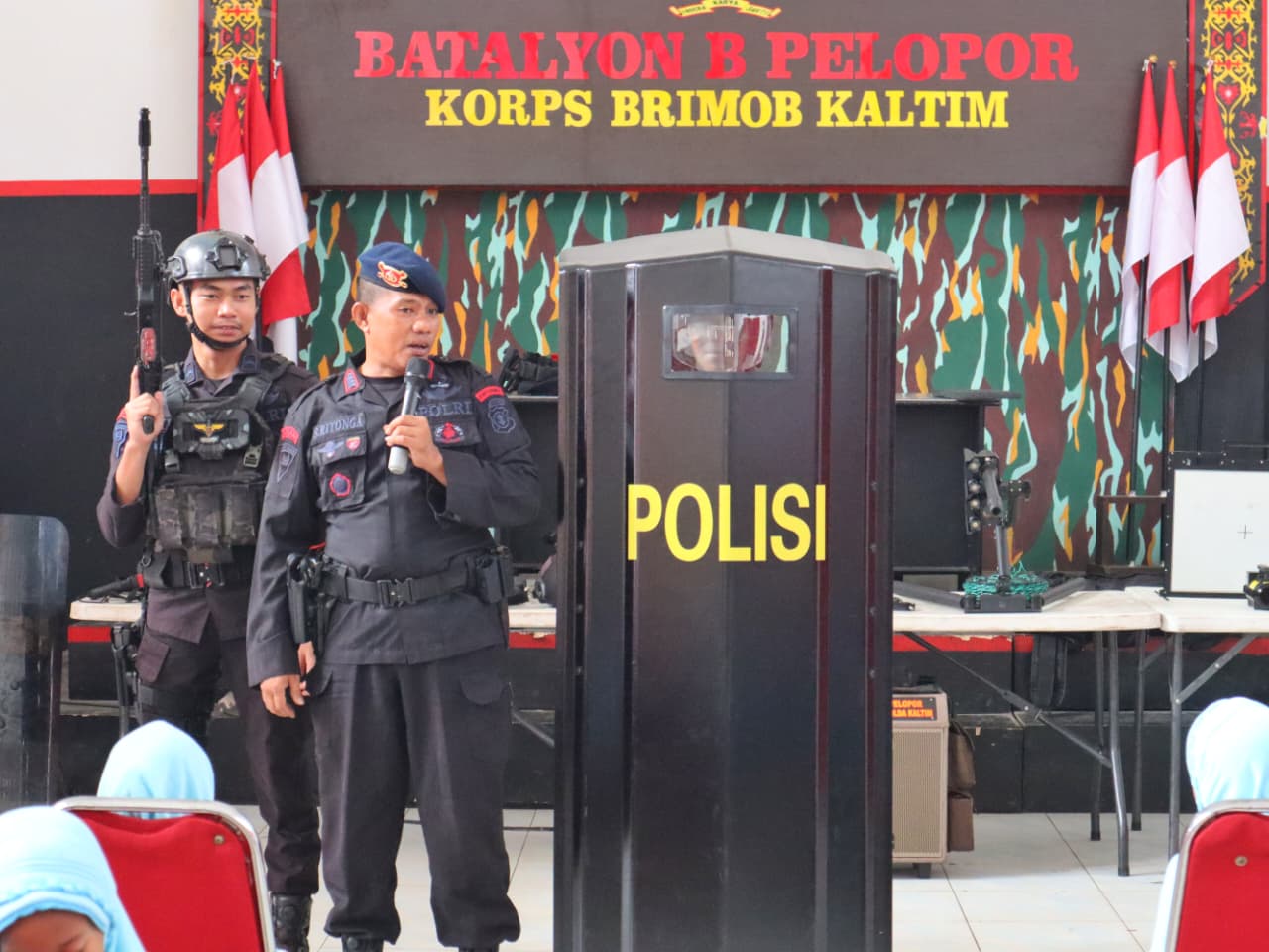 Kegiatan ini disambut hangat oleh personel Batalyon B Pelopor bersama Subden Komposit Gegana, yang memberikan pengenalan tentang tugas-tugas Brimob serta memperlihatkan berbagai perlengkapan dan kendaraan taktis yang digunakan dalam operasional kepolisian.