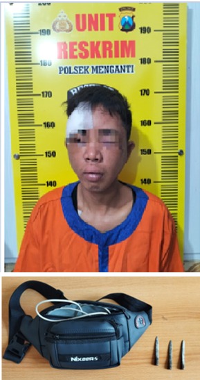 Aksi itu dipergoki saksi yang kemudian meminta bantuan warga serta Unit Reskrim Polsek Menganti yang kebetulan sedang patroli. Dalam upaya melarikan diri, pelaku sempat mengganti baju dari hijau ke merah dan membuang tas di sekitar telaga desa. Petugas bersama saksi yang sudah mengenali ciri-ciri pelaku melakukan penyisiran. Dari tas yang ditemukan, polisi mengamankan kunci letter T dan pembuka magnet kontak motor. Tak lama, terduga berhasil diamankan beserta barang buktinya.