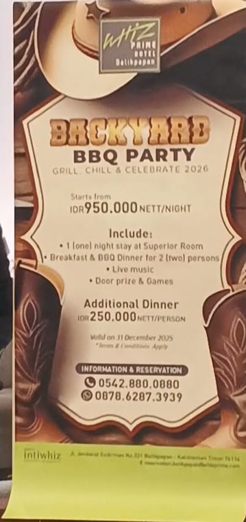 “Whiz Prime ingin memberikan opsi baru bagi warga Balikpapan maupun tamu dari luar kota. Backyard BBQ Party menghadirkan suasana santai namun tetap eksklusif, dengan menu barbeque yang disiapkan langsung oleh tim chef kami,” ujarnya.
