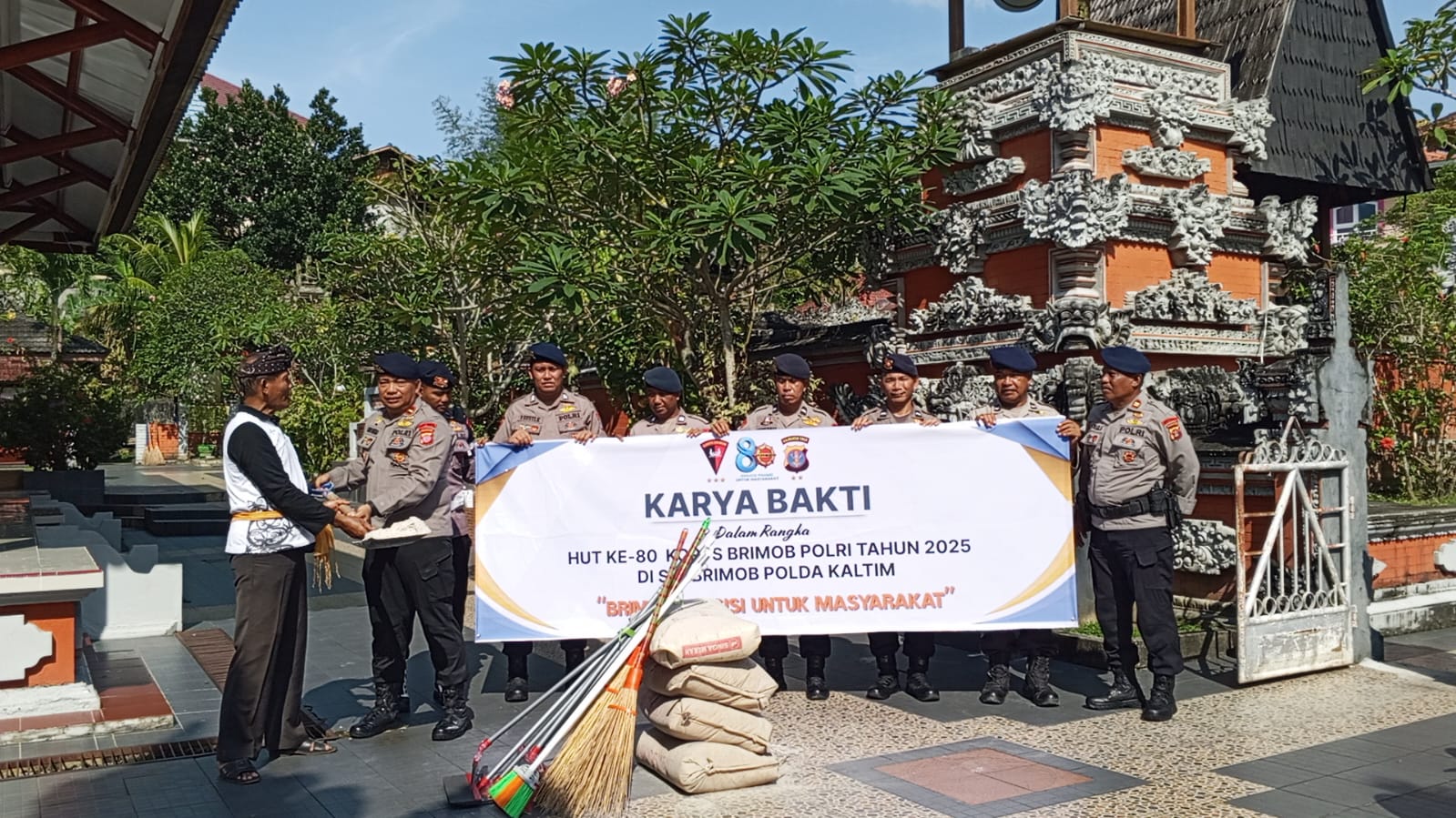 Faktanusa.com, Balikpapan – Dalam rangka memperingati Hari Ulang Tahun ke-80 Korps Brimob Polri tahun 2025, personel Batalyon A Pelopor Satuan Brimob Polda Kalimantan Timur melaksanakan kegiatan karya bakti di Pura Giri Jaya Natha, Jalan R.E. Martadinata, Balikpapan, Selasa (28/10/25).