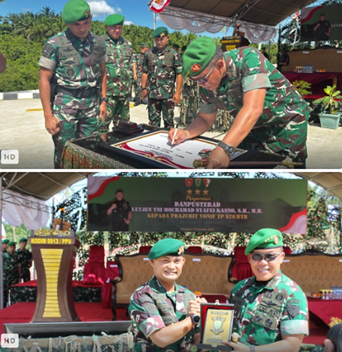 Faktanusa.com, Penajam, 15 Oktober 2025 – Komandan Pusat Teritorial Angkatan Darat (Danpusterad), Letnan Jenderal TNI Mochamad Syafei Kasno, S.H., M.H., melakukan kunjungan kerja ke Yonif TP 826/BTB, yang merupakan bagian dari Brigif TP 85/BTC. Kunjungan ini didampingi oleh Komandan Brigif TP 85/BTC (Danbrigif), Kolonel Inf Alzaki, S.E., M.M., M.B.A., M.M.A.S., untuk meninjau langsung progres program ketahanan pangan terintegrasi yang dilaksanakan satuan.